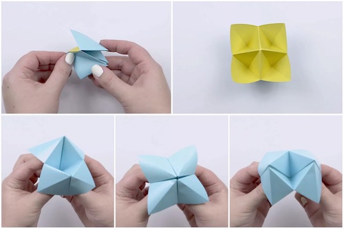 You can find folding instructions on the Spruce Crafts website here: https://www.thesprucecrafts.com/make-an-origami-cootie-catcher-4121204
