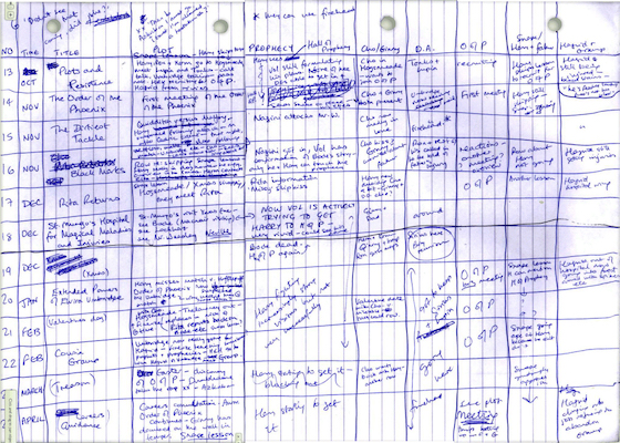 Rowling planned her work meticulously in her paper notebooks, creating a grid system to layout the carefully constructed plot that would take Harry through his secondary education and free the wizarding world from the tyranny of his nemesis Voldemort.