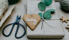 Brown paper packaging tied up with string is so good, they made a song about it… and there’s nothing to prevent it looking festive either. Add some festive greenery – a pine branch or a holly spring – or perhaps a dried orange slice or two.