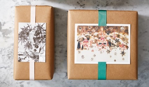 #3. Repurpose last year’s Christmas cards on your Christmas gift wrapping